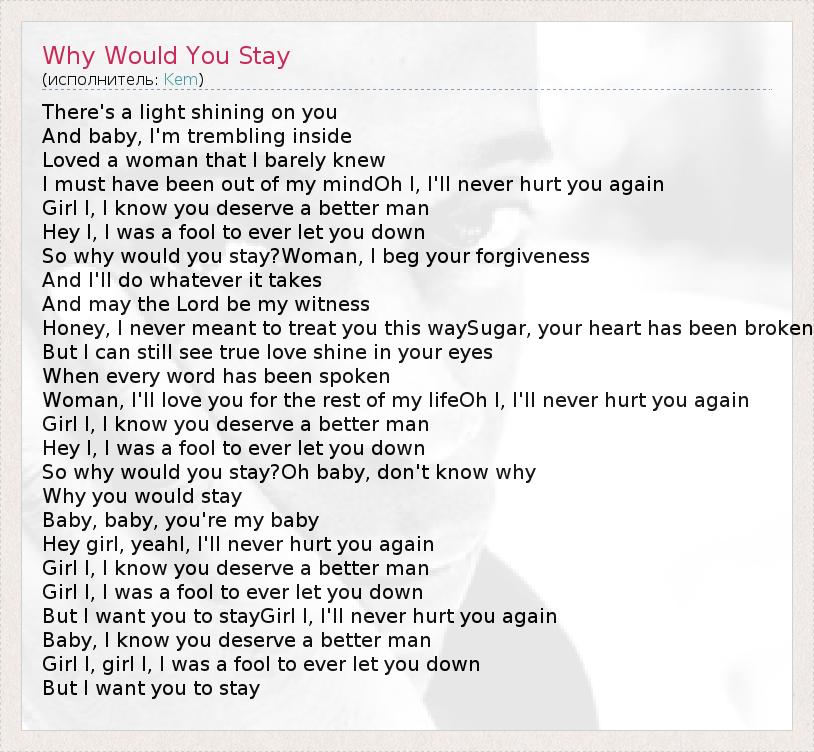 А как ты думаешь, о чем песня "Why Would You Stay" ?