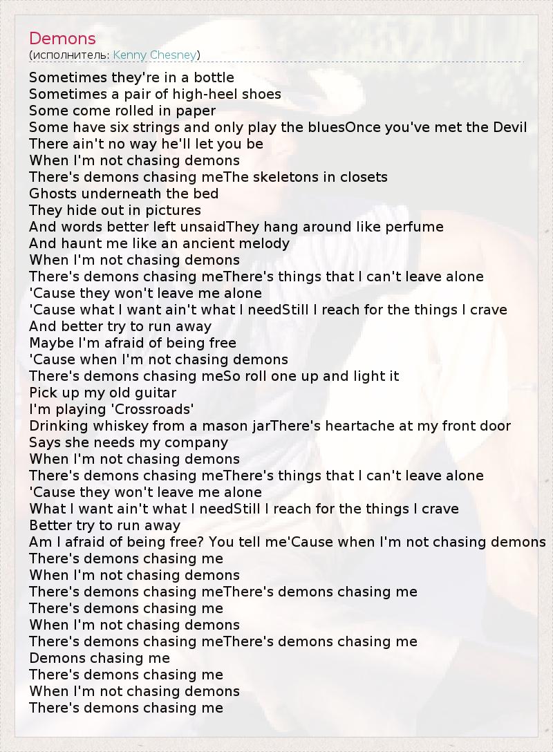 Am I afraid of being free? You tell me'Cause when I'm not chasing demons