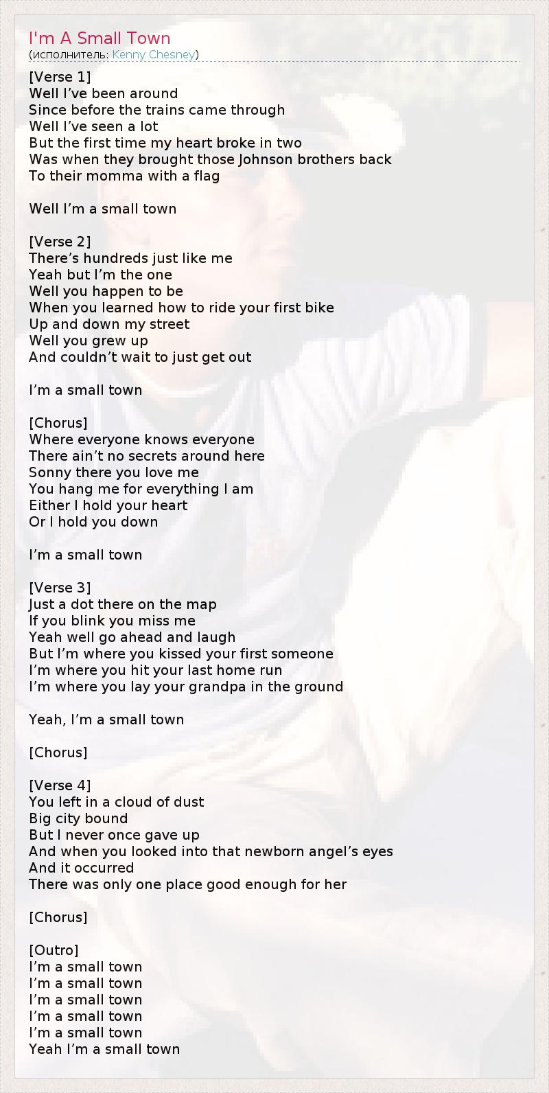 А как ты думаешь, о чем песня "I'm A Small Town" ?