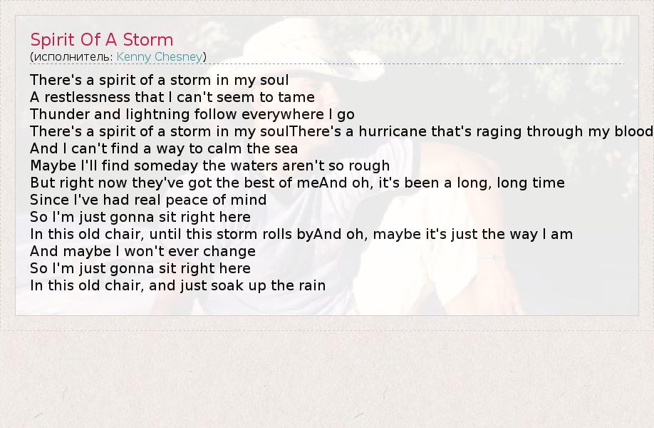 А как ты думаешь, о чем песня "Spirit Of A Storm" ?