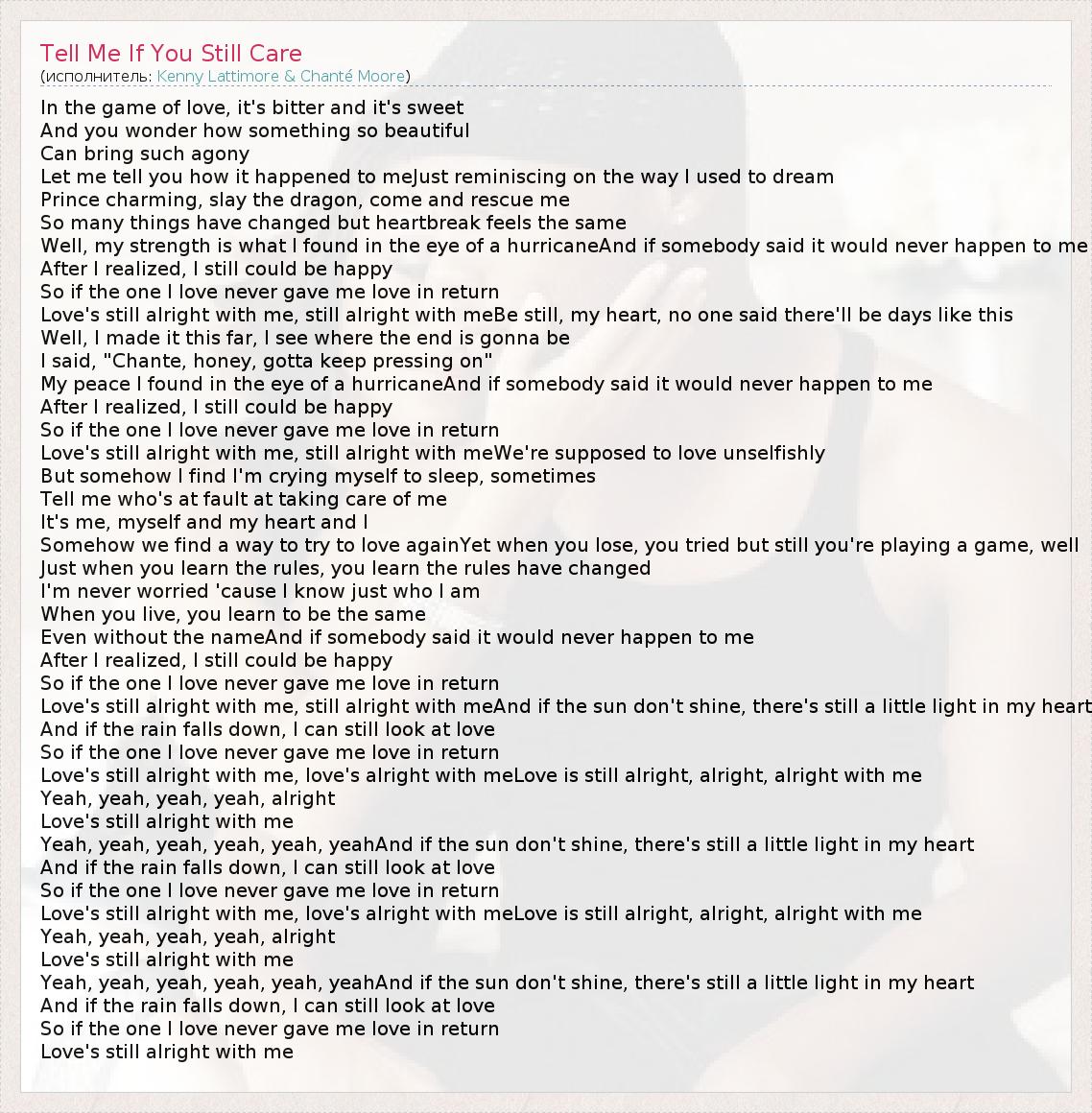 А как ты думаешь, о чем песня "Tell Me If You Still Care" ?
