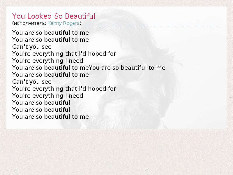 А как ты думаешь, о чем песня "You Looked So Beautiful" ?