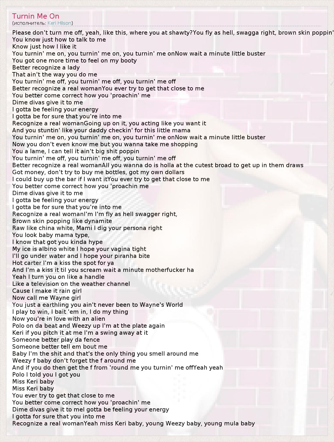 А как ты думаешь, о чем песня "Turnin Me On" ?
