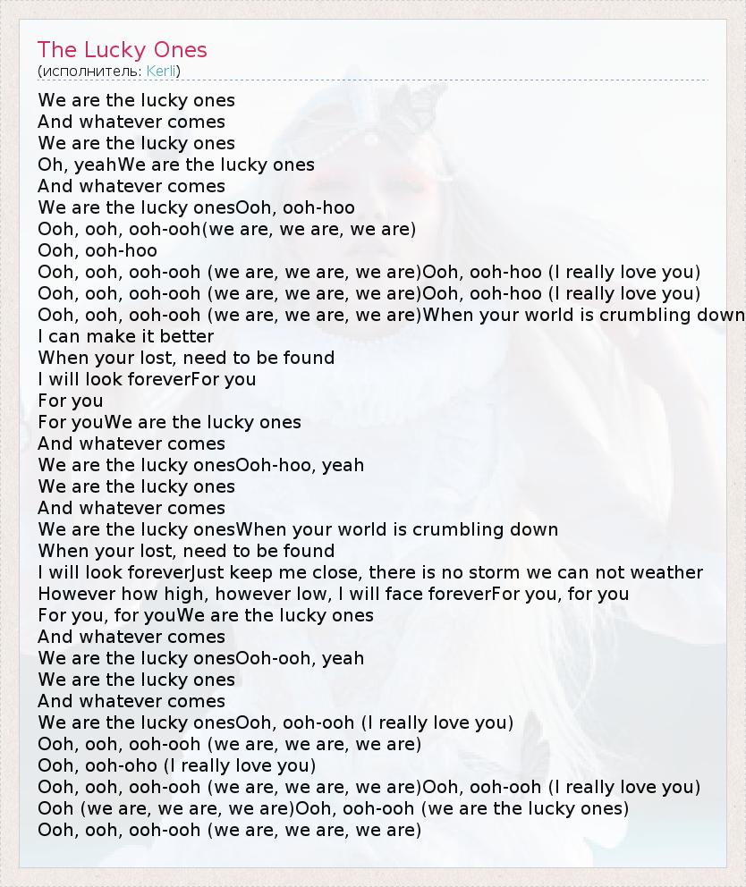 We are the lucky onesOoh, ooh-ooh (I really love you)