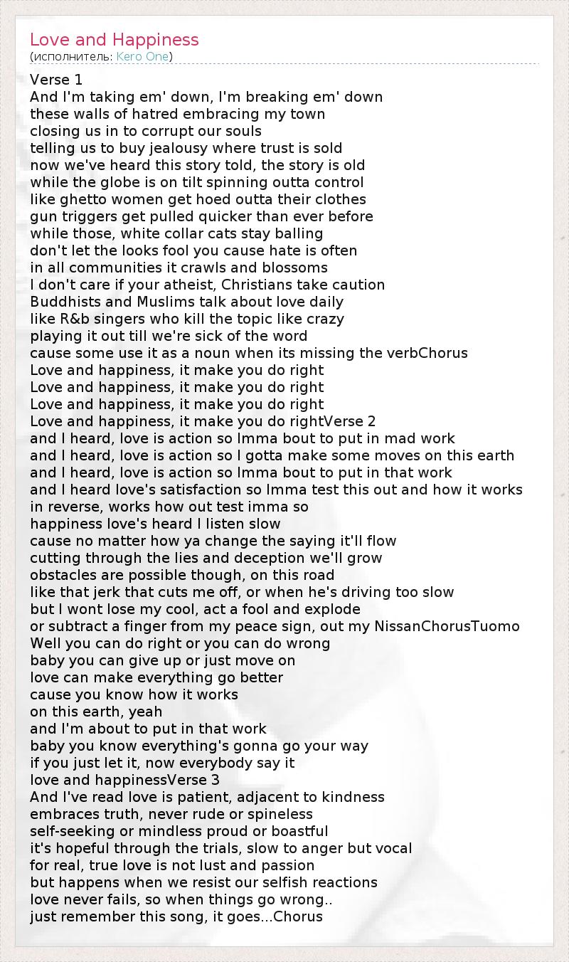 А как ты думаешь, о чем песня "Love and Happiness" ?