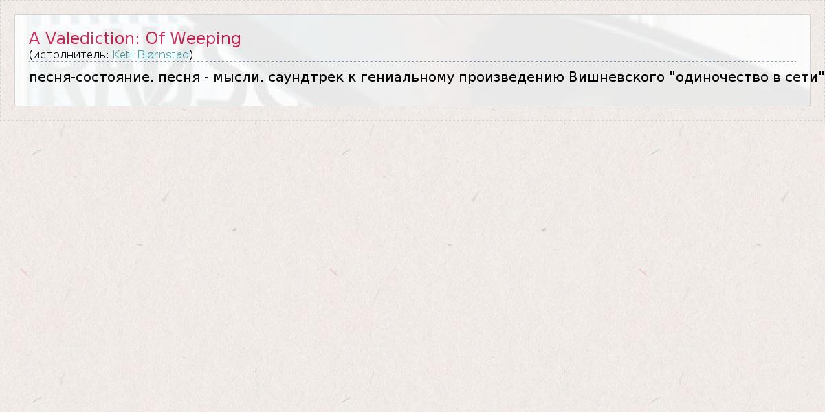 А как ты думаешь, о чем песня "A Valediction: Of Weeping" ?