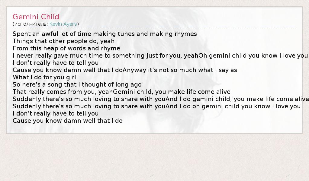 А как ты думаешь, о чем песня "Gemini Child" ?