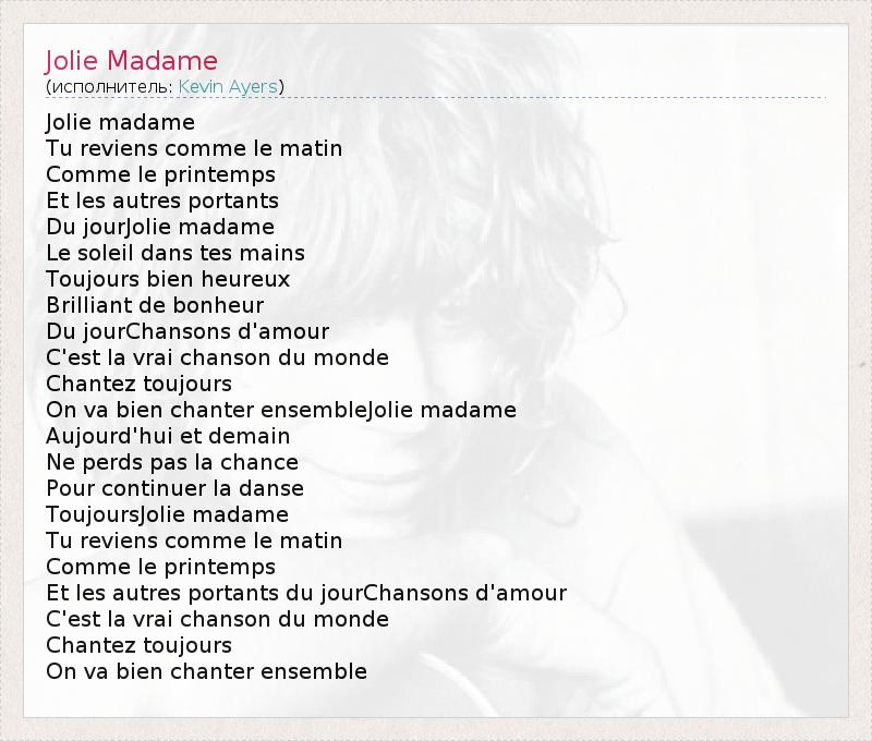 А как ты думаешь, о чем песня "Jolie Madame" ?