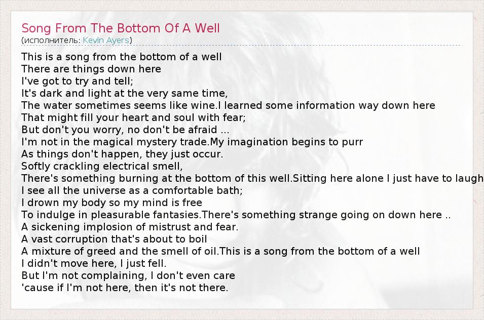 А как ты думаешь, о чем песня "Song From The Bottom Of A Well" ?