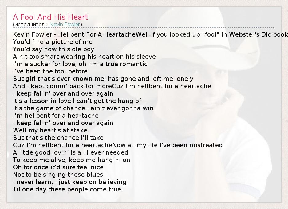 Kevin Fowler - Hellbent For A HeartacheWell if you looked up "fool" in Webster's Dic book