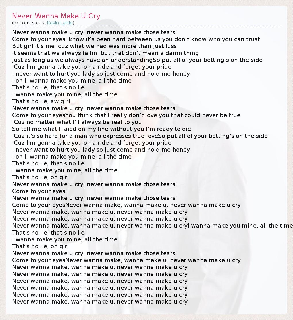 Never wanna make, wanna make u, never wanna make u cryI wanna make you mine, all the time