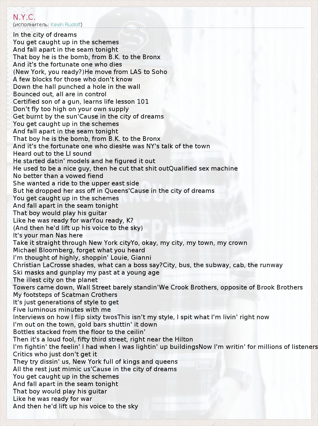 А как ты думаешь, о чем песня "N.Y.C." ?