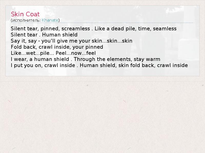 А как ты думаешь, о чем песня "Skin Coat" ?