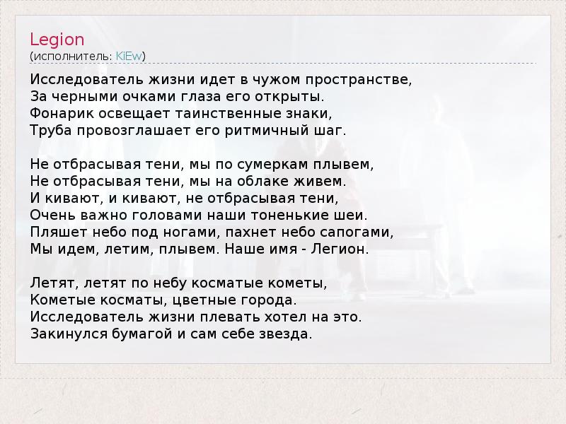А как ты думаешь, о чем песня "Legion" ?