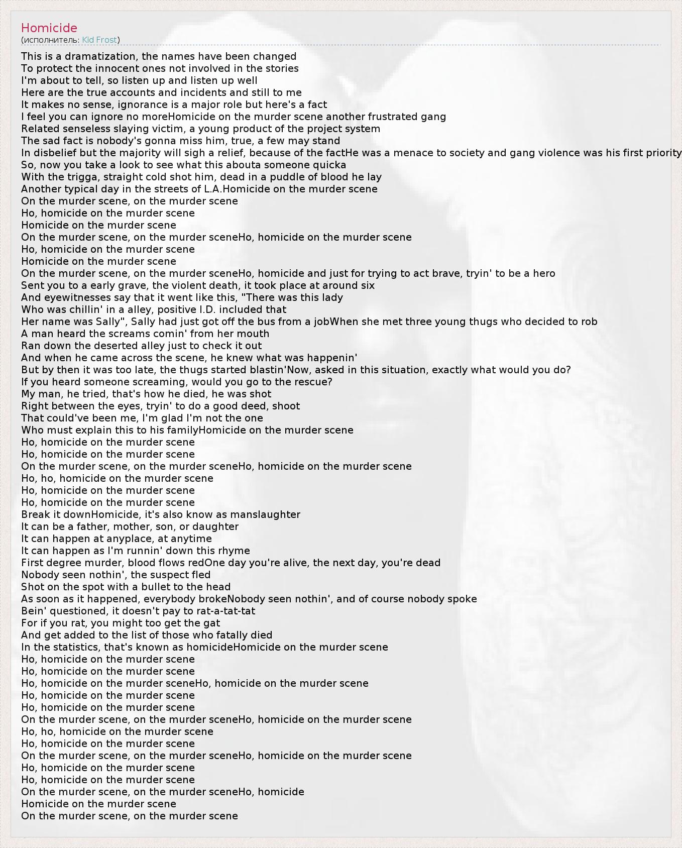 А как ты думаешь, о чем песня "Homicide" ?