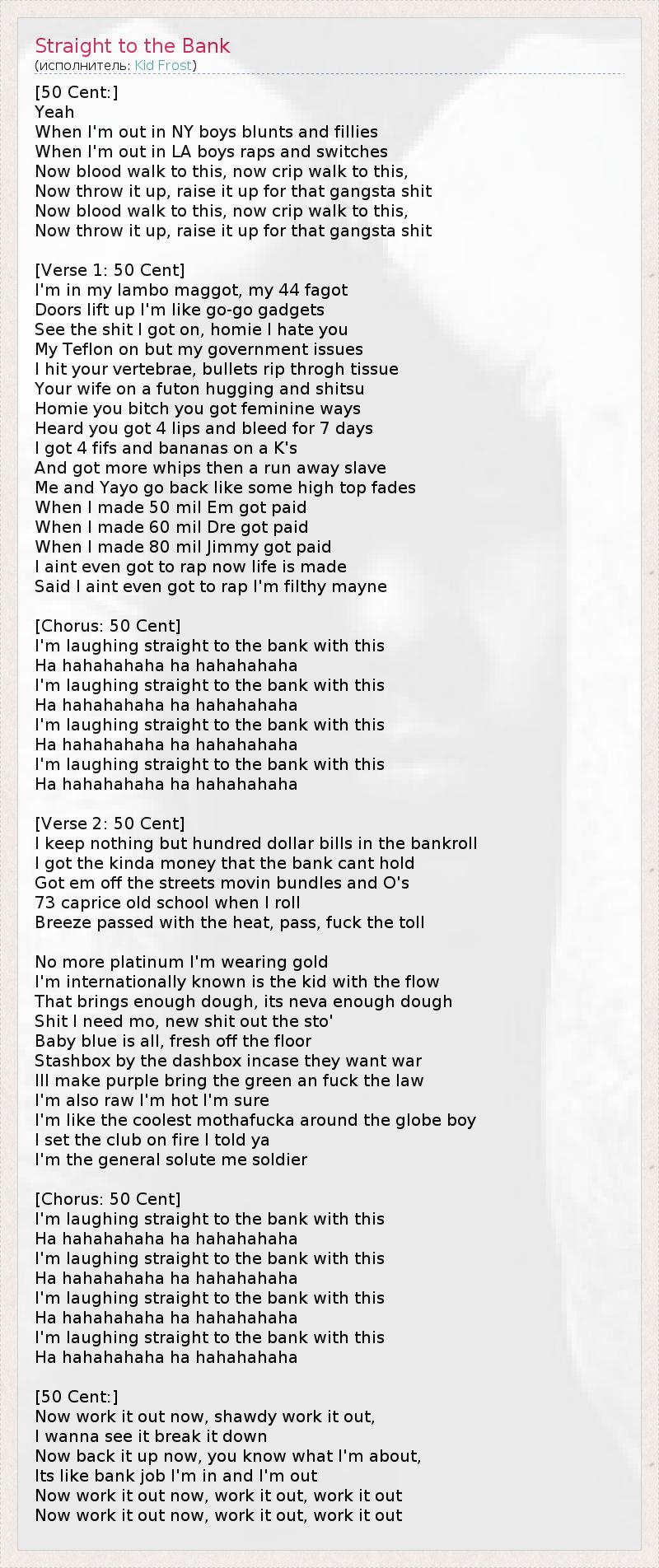 А как ты думаешь, о чем песня "Straight to the Bank" ?