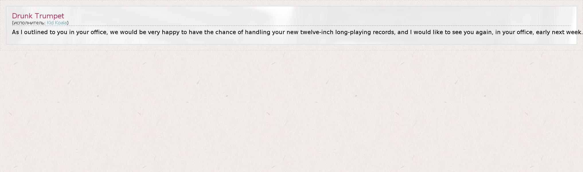 А как ты думаешь, о чем песня "Drunk Trumpet" ?