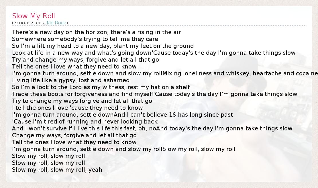 I'm gonna turn around, settle down and slow my rollSlow my roll, slow my roll