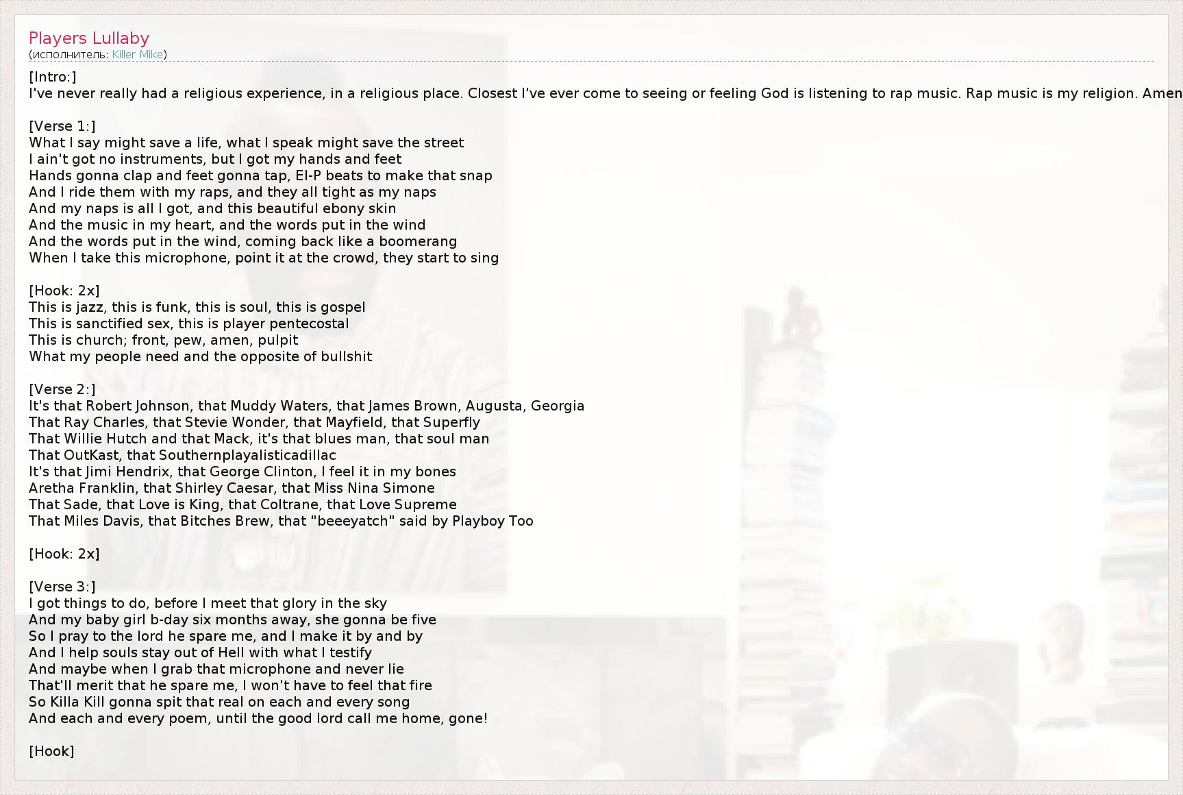 А как ты думаешь, о чем песня "Players Lullaby" ?