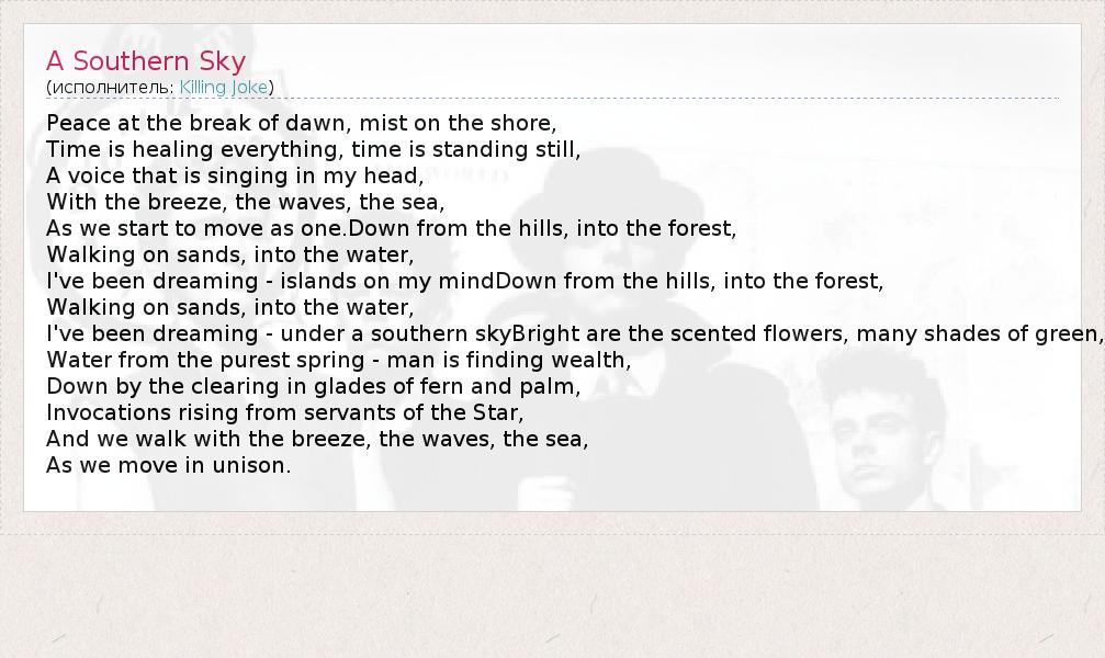 А как ты думаешь, о чем песня "A Southern Sky" ?
