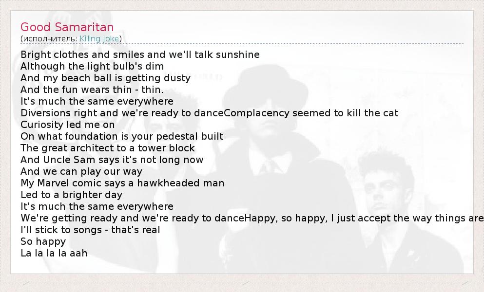 А как ты думаешь, о чем песня "Good Samaritan" ?