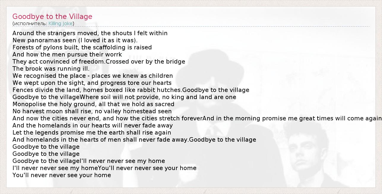 А как ты думаешь, о чем песня "Goodbye to the Village" ?