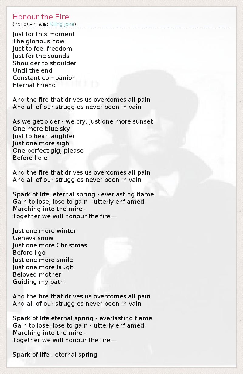А как ты думаешь, о чем песня "Honour the Fire" ?