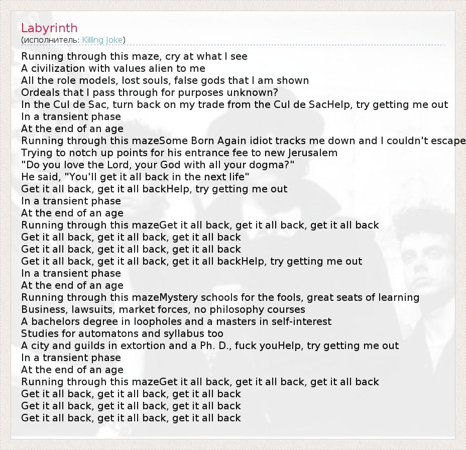 Running through this mazeGet it all back, get it all back, get it all back