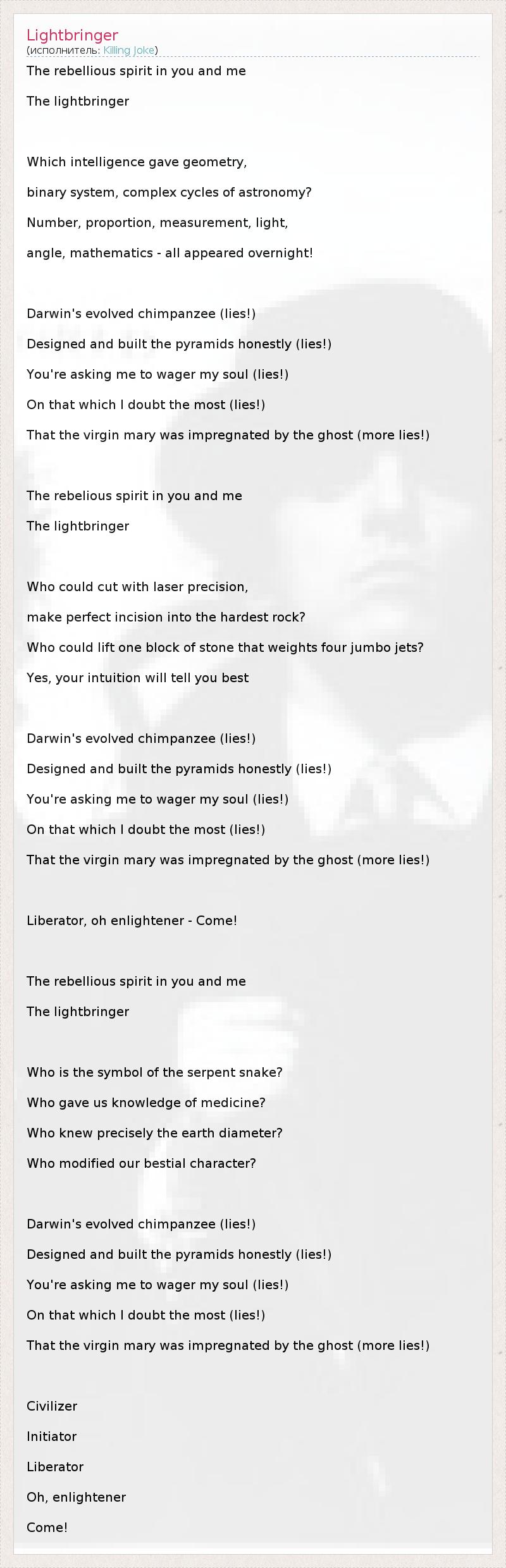 А как ты думаешь, о чем песня "Lightbringer" ?