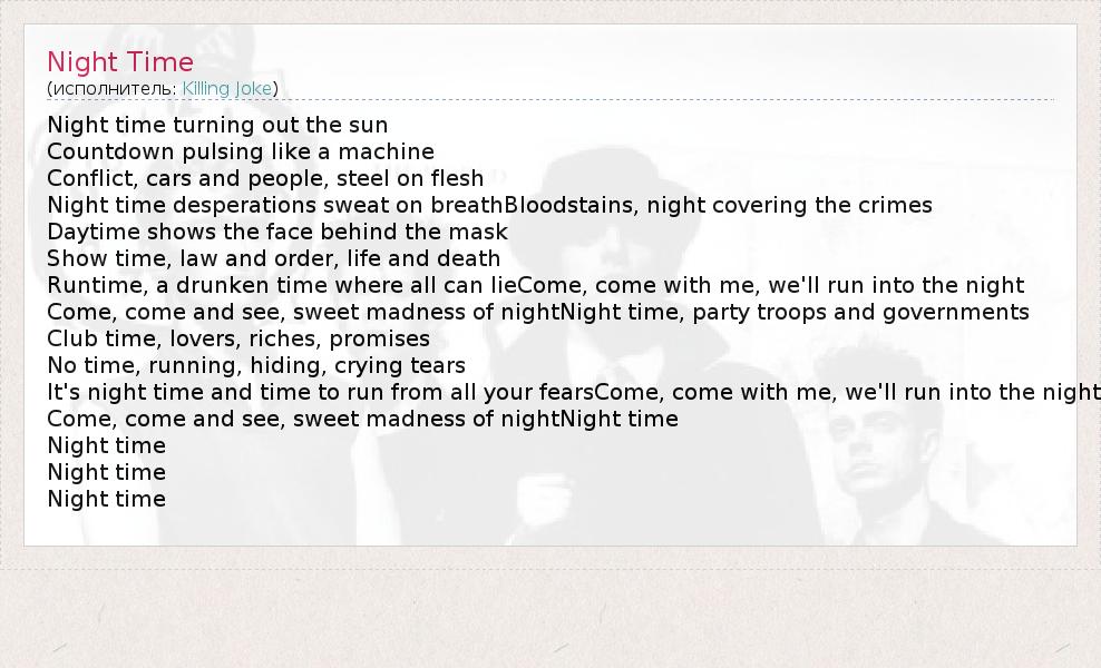 А как ты думаешь, о чем песня "Night Time" ?