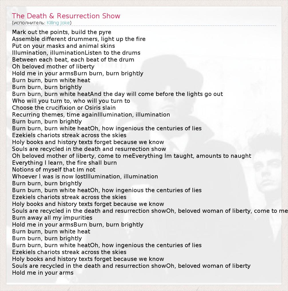 А как ты думаешь, о чем песня "The Death & Resurrection Show" ?