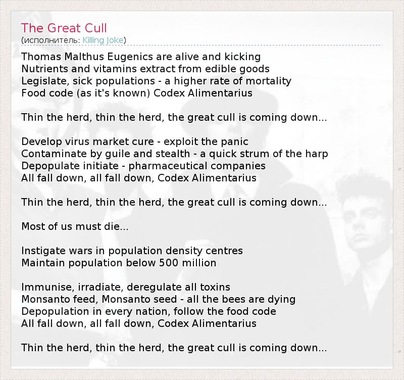 А как ты думаешь, о чем песня "The Great Cull" ?