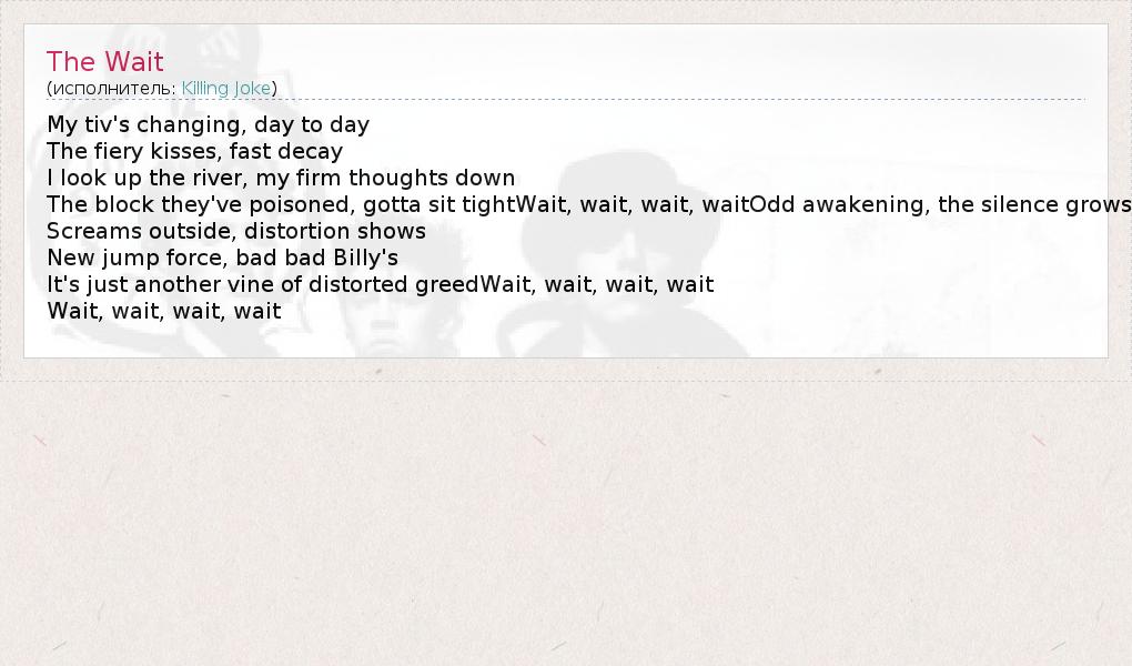 The block they've poisoned, gotta sit tightWait, wait, wait, waitOdd awakening, the silence grows