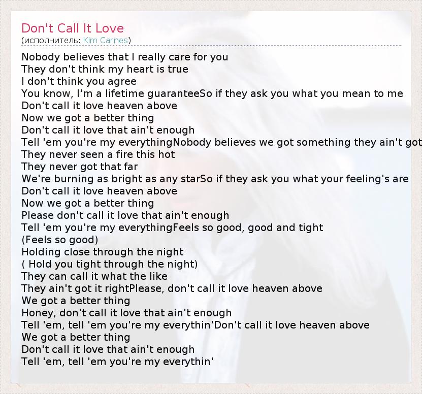А как ты думаешь, о чем песня "Don't Call It Love" ?
