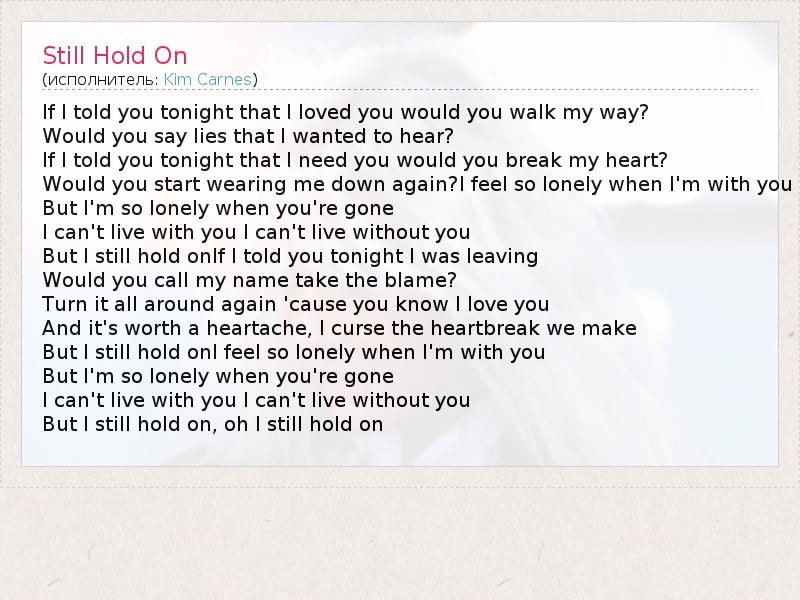 А как ты думаешь, о чем песня "Still Hold On" ?