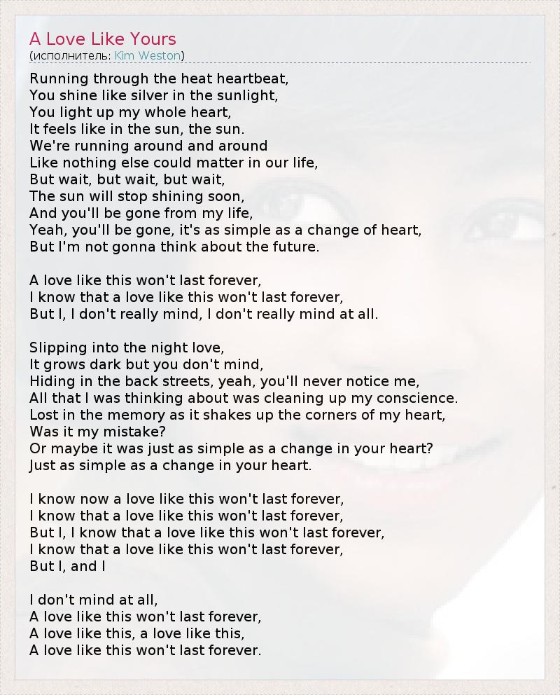 А как ты думаешь, о чем песня "A Love Like Yours" ?