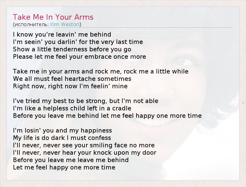 А как ты думаешь, о чем песня "Take Me In Your Arms" ?