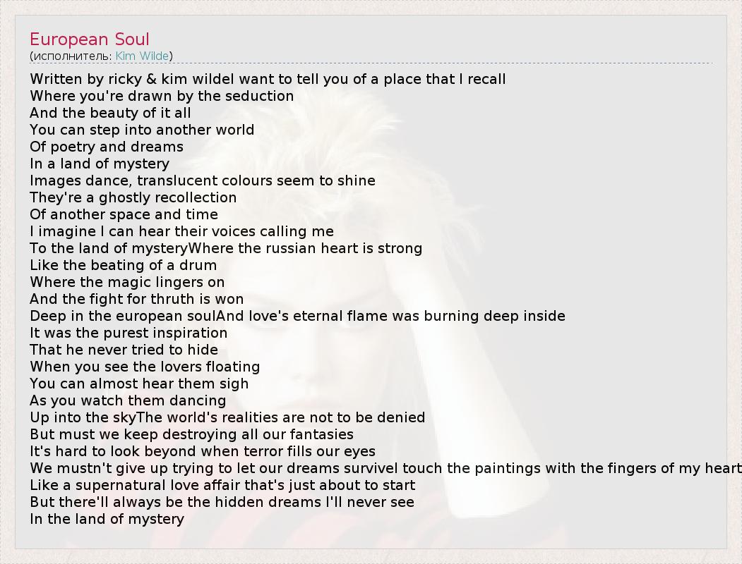 А как ты думаешь, о чем песня "European Soul" ?
