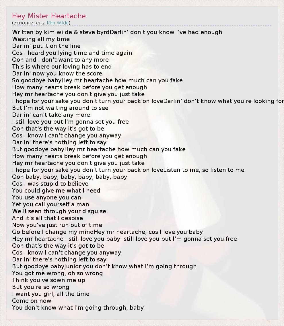 А как ты думаешь, о чем песня "Hey Mister Heartache" ?