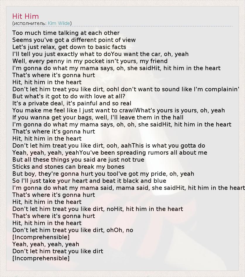 А как ты думаешь, о чем песня "Hit Him" ?