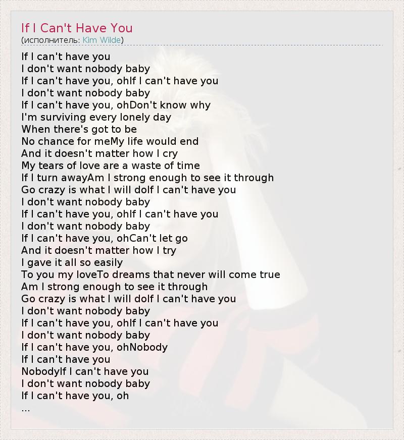 If I can't have you, ohIf I can't have you