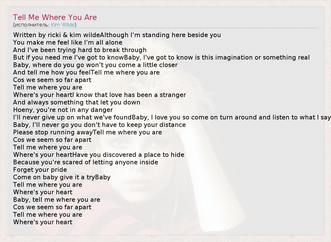 ГлавнаяИсполнителиKim WildeTell Me Where You Are