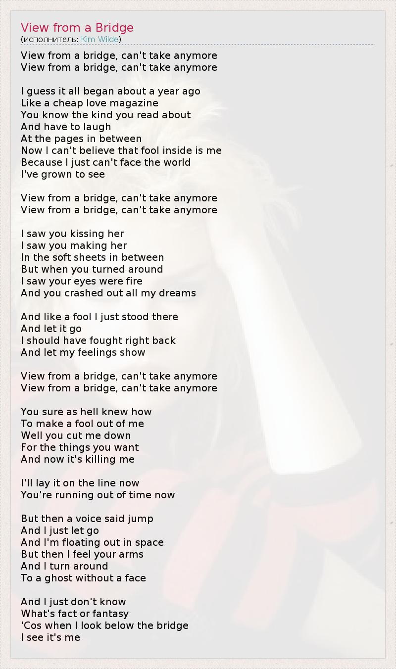 А как ты думаешь, о чем песня "View from a Bridge" ?