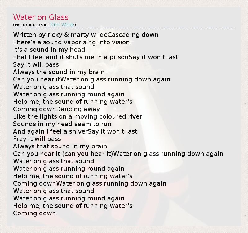 А как ты думаешь, о чем песня "Water on Glass" ?