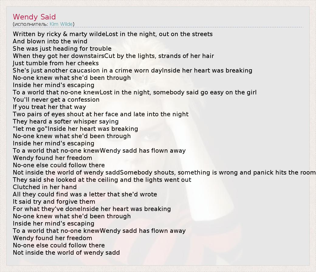 А как ты думаешь, о чем песня "Wendy Said" ?