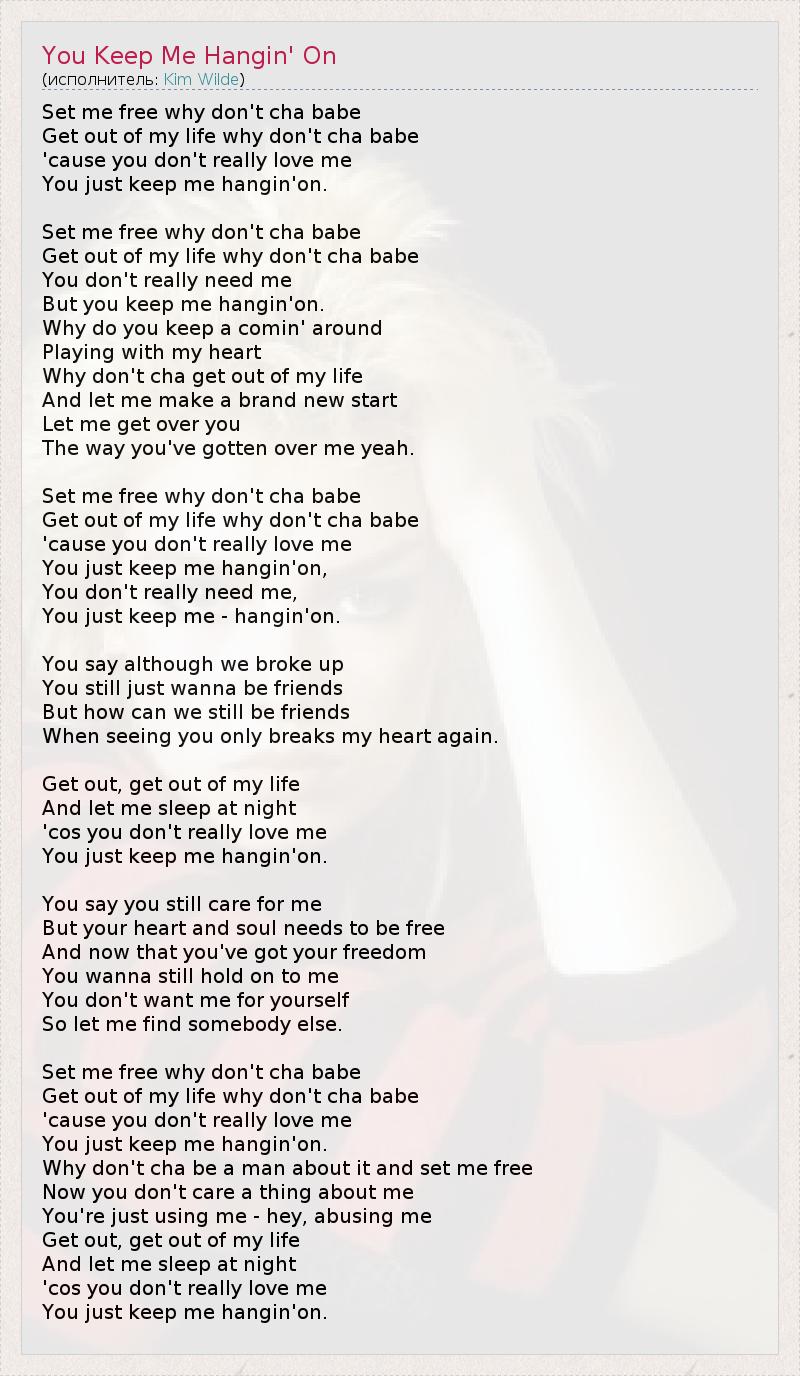 А как ты думаешь, о чем песня "You Keep Me Hangin' On" ?
