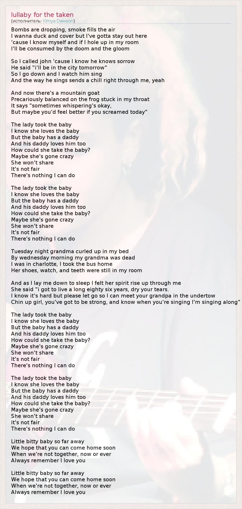А как ты думаешь, о чем песня "lullaby for the taken" ?