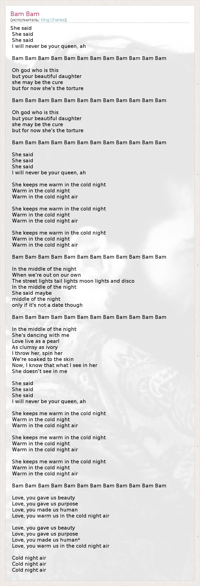 А как ты думаешь, о чем песня "Bam Bam" ?