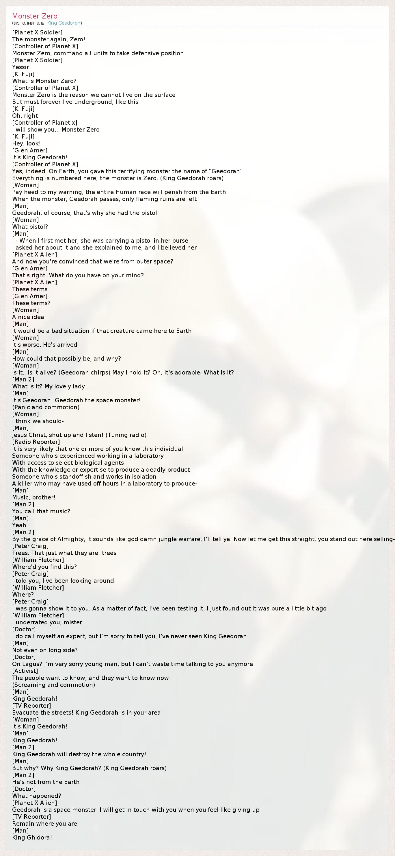 А как ты думаешь, о чем песня "Monster Zero" ?