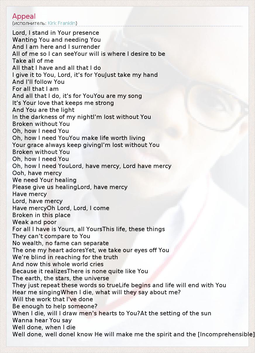 Oh, how I need YouLord, have mercy, Lord have mercy